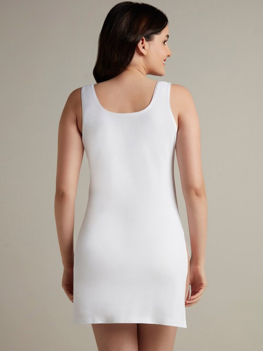 White solid kurta slip, has a round neck and sleeveless