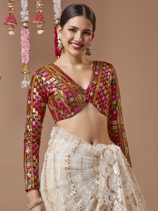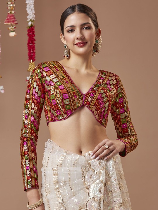 Georgette V- Neck Padded Readymade Blouse with Full Sleeves